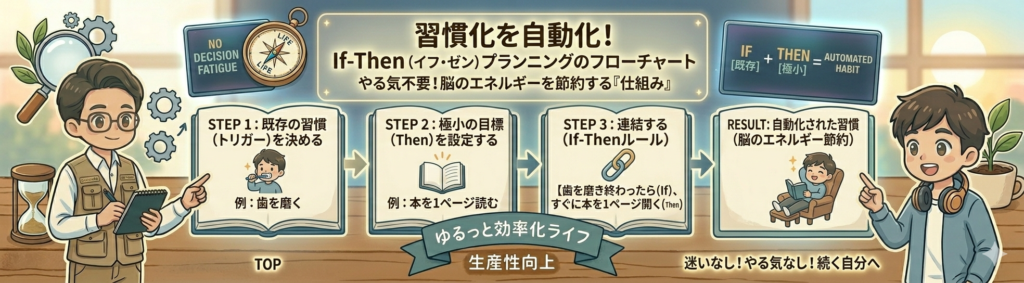 意志を使わずにできる「小さな行動」を積み重ねた先には、あなたが想像もしなかった「努力なしで成長し続ける自分」が待っています。さあ、今夜からIf-Thenプランニングを1つだけ作ってみましょう。