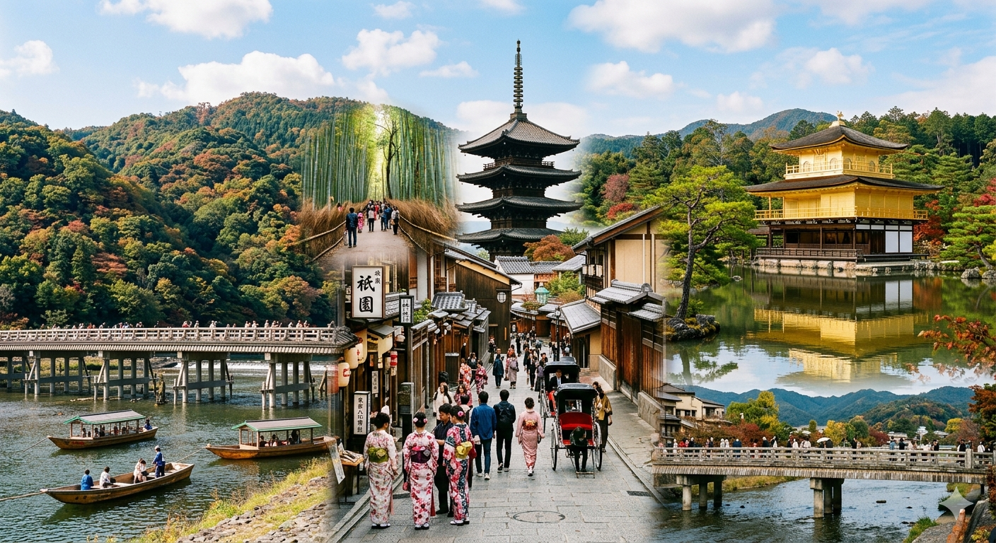 • 午前:嵐山・竹林の道(平坦で歩きやすい。車椅子対応の道あり)